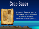 Старият завет е част от Библията, която обхваща всичките 50 книги, написани преди Христос. Книгите са: Битие, Изход, Левит, Числа, Второзаконие, Исус навин, Съдии, Рут, Четирите книги на царете,...
