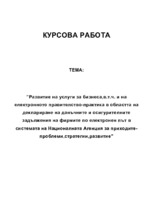 ”Развитие на услуги за бизнеса,в.т.ч. и на електронното правителство-практика в областта на деклариране на данъчните и осигурителните задължения на фирмите по електронен път в системата на Националната Агенция за приходите-проблеми,стратегии,развитие” Про