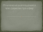 Представена е същността на директният трансфер и сметките които се използват за отразяването му. Посочени са необходимите счетоводни документи, както и стопанските операции....