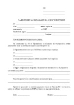Заявление за удостоверение за пътуване извън околностите и границите на България...
