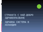 Страната с най-добро здравеопазване общовалидна схема за осигуряване. Изпълнява се от частни осигурители залага се на конкуренцията, свободния избор, качеството и ефективността...